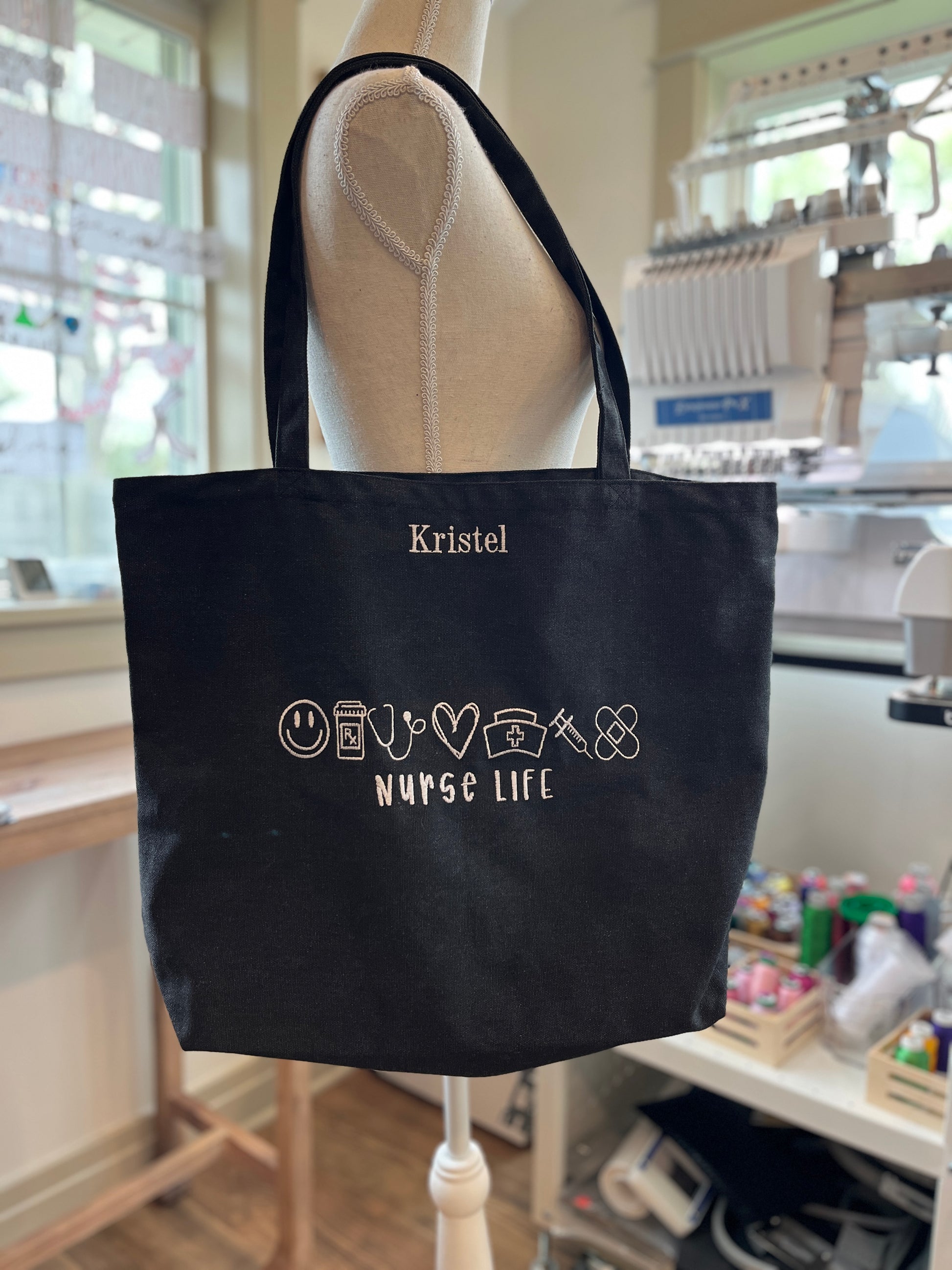 Custom Embroidered Nurse Life Tote Bag – Personalized Nurse Gift