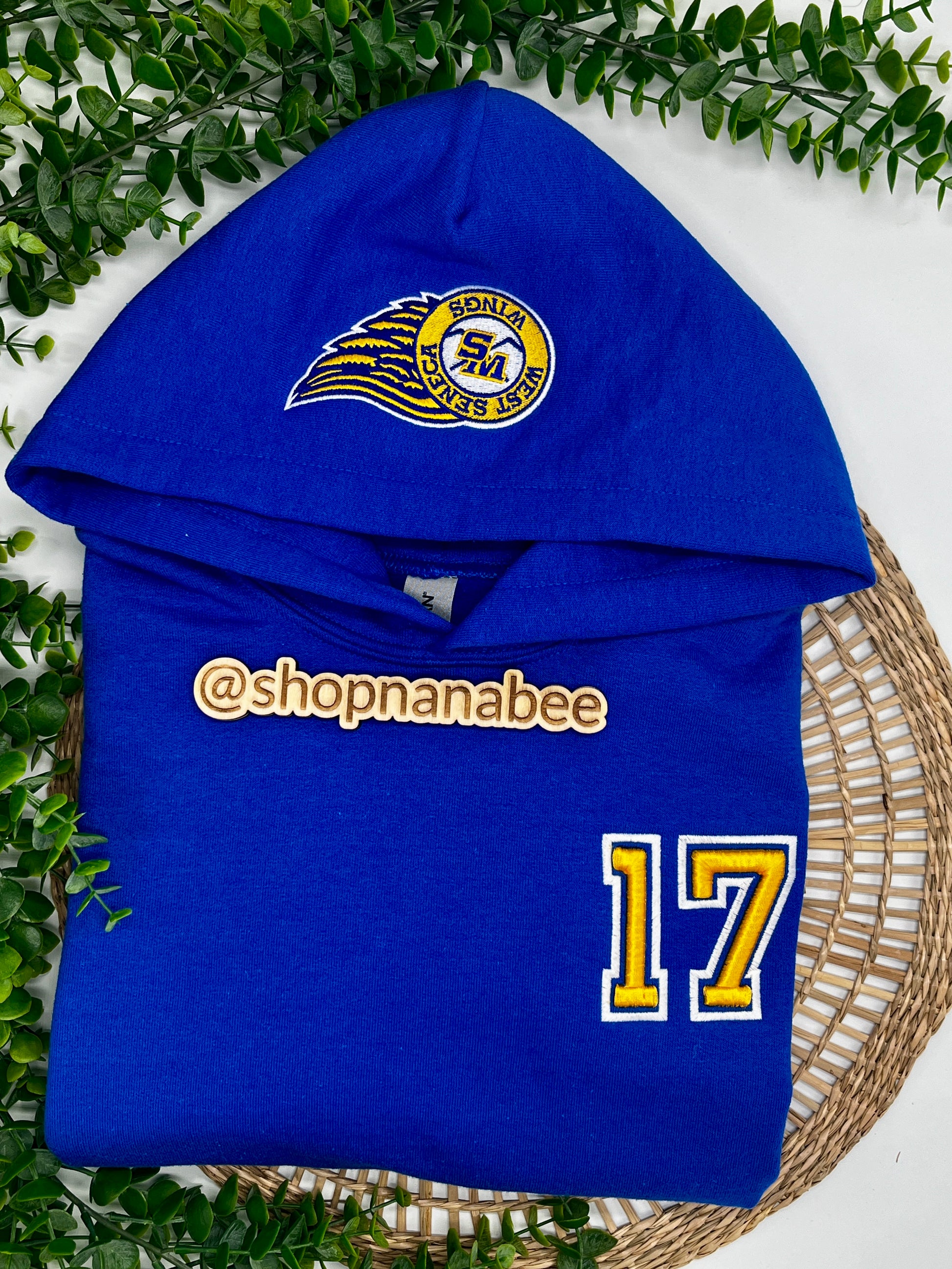 Custom West Seneca Wings Hoodie – Puff Jersey Number + Logo on Hood | Youth