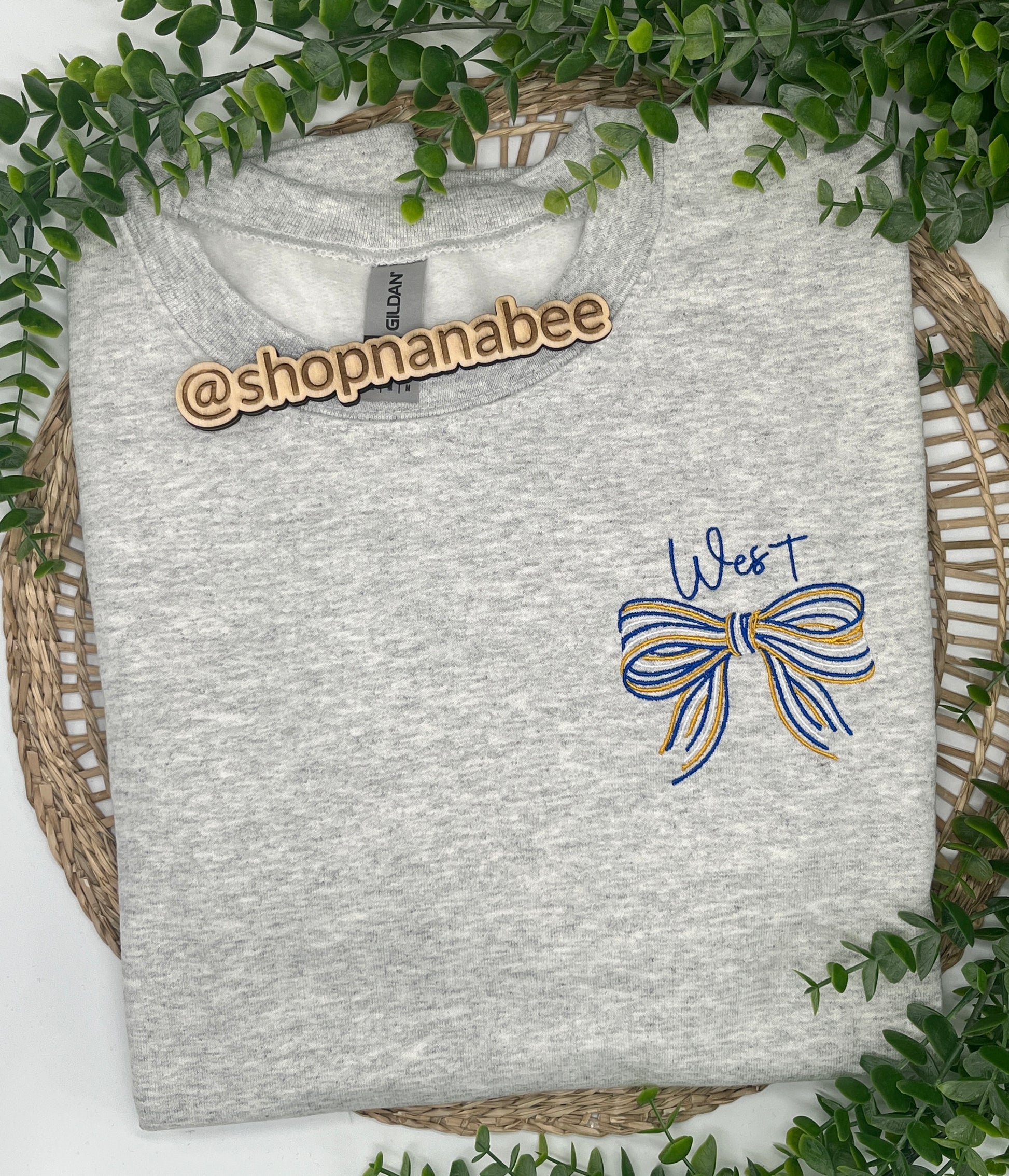 Show off your school pride with our Custom School Spirit Crewneck Sweatshirt—the ultimate way to celebrate your team or institution in style. This versatile crewneck features a customizable embroidered bow, allowing you to select up to three colors that represent your school or sport.