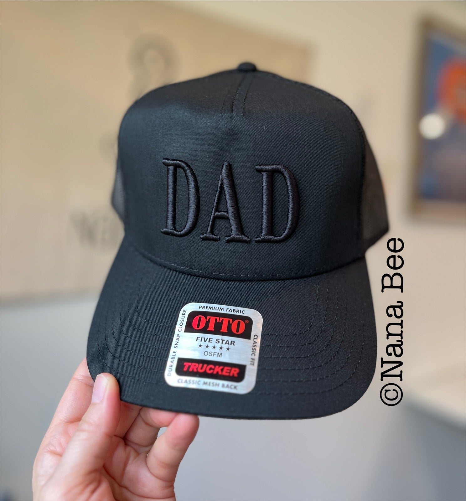 DAD Puff Embroidered Trucker Hat – Black on Black | Father's Day Gift