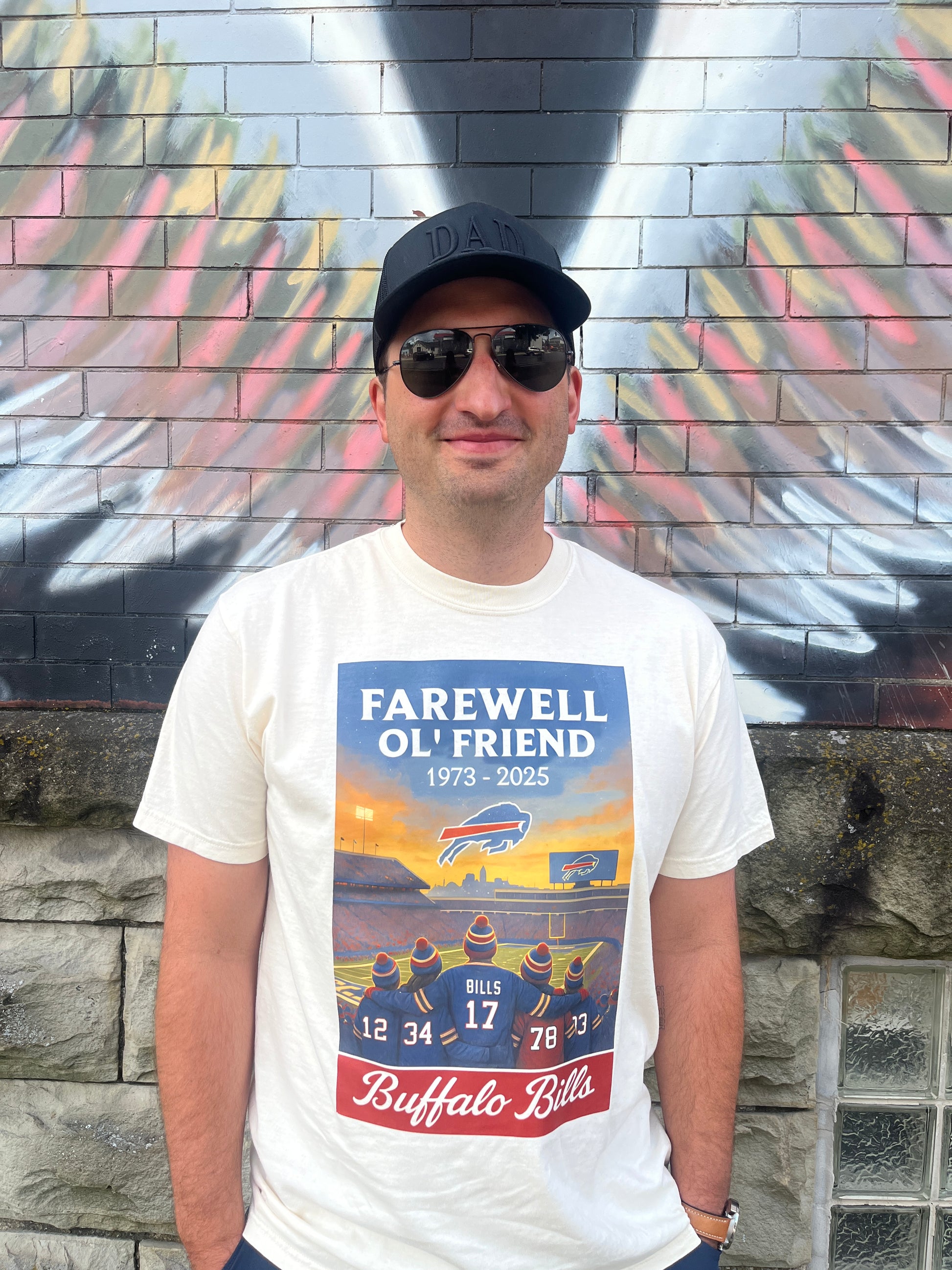 Say goodbye to a legendary era in WNY football history with this limited edition Farewell Ol’ Friend t-shirt. Designed to honor the original Orchard Park stadium that’s been home to unforgettable moments from 1973 to 2025, this tee is a wearable tribute to the fans, the family traditions, and the unforgettable game-day energy.